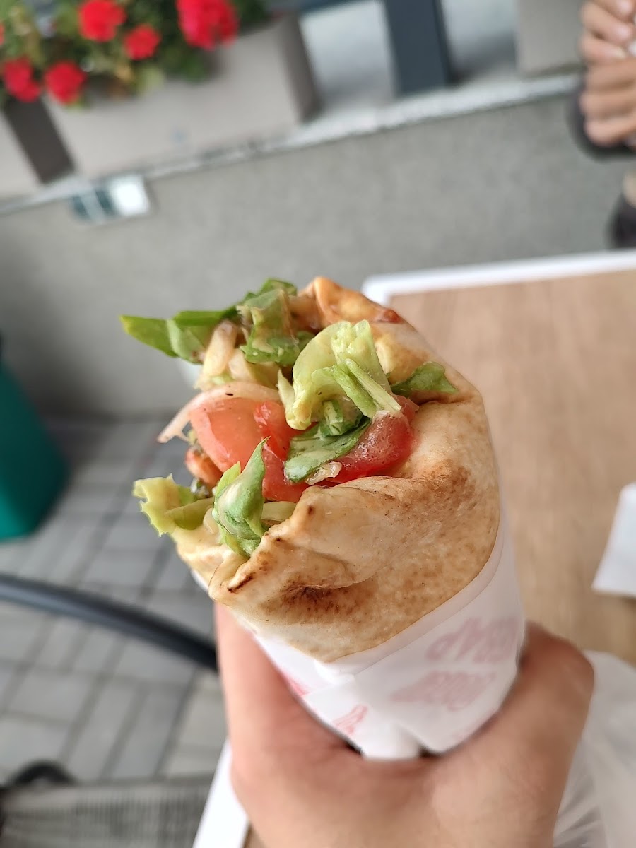 The best shaorma around , chicken meat is perfect and the ingredients are mixed inside at the end .